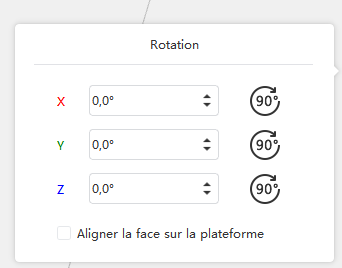 Ici le modèle est bien plaqué. Sinon corriger avec les outils Translater et/ou Pivoter afin de ne pas imprimer dans le vide ou faire des supports inutiles. |